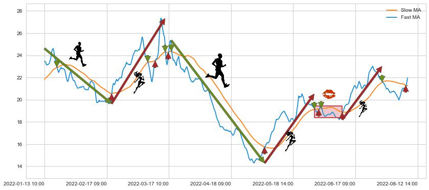 05-27 14:00至06-10 14:00 慢线与快线多次接触,存在上下穿越,有缠绕