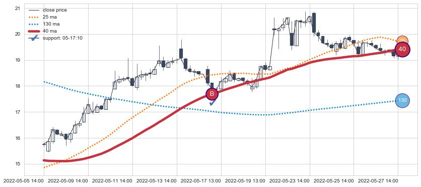 ⚂ 2022-08-03 14:00:00-小时均线向下破位,2022-08-04 13:00:00-小时重新上穿突破均线,均线支撑再次生效