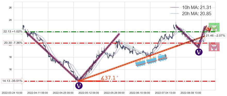 ♘ 支撑价格位20.30,可信任强度58.97%,距离最后交易2022-08-12 14:00形成的收盘价格21.91相差 -7.36%