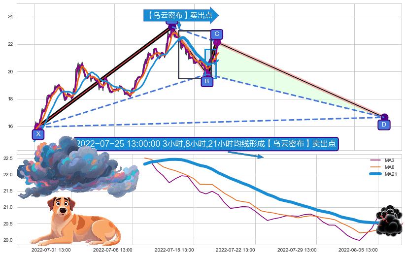➣ D点拟合预测价格16.65,距离最后交易收盘价格21.91相差 -24.02%