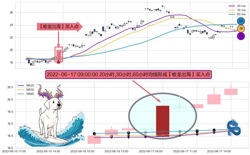 形态多维评估: ⚀ 2022-06-17 09:00:00小时显现 20小时-30小时-60小时均线 【蛟龙出海】买入点 看多信号,后市看涨,买入
