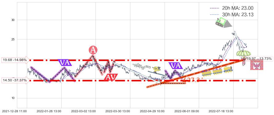 ♞ 20小时均线:23.00,30小时均线:23.13→ 快线<慢线