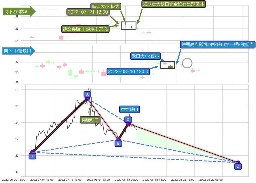 ➢ 2022-08-10 13:00形成:向下跳空【中继】缺口