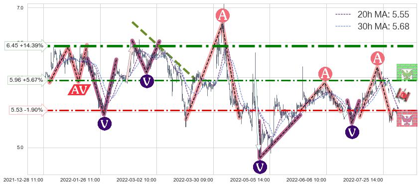 ♞ 20小时均线:5.55,30小时均线:5.68→ 快线<慢线