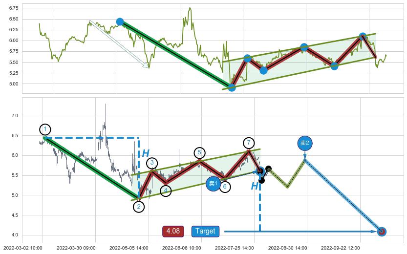 ♘ 阻力价格位6.45,可信任强度94.19%,距离最后交易2022-08-12 14:00形成的收盘价格5.64相差 +14.39%