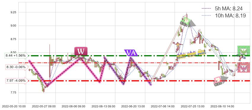 ♘ 阻力价格位8.44,可信任强度79.88%,距离最后交易2022-08-12 14:00形成的收盘价格8.31相差 +1.56%