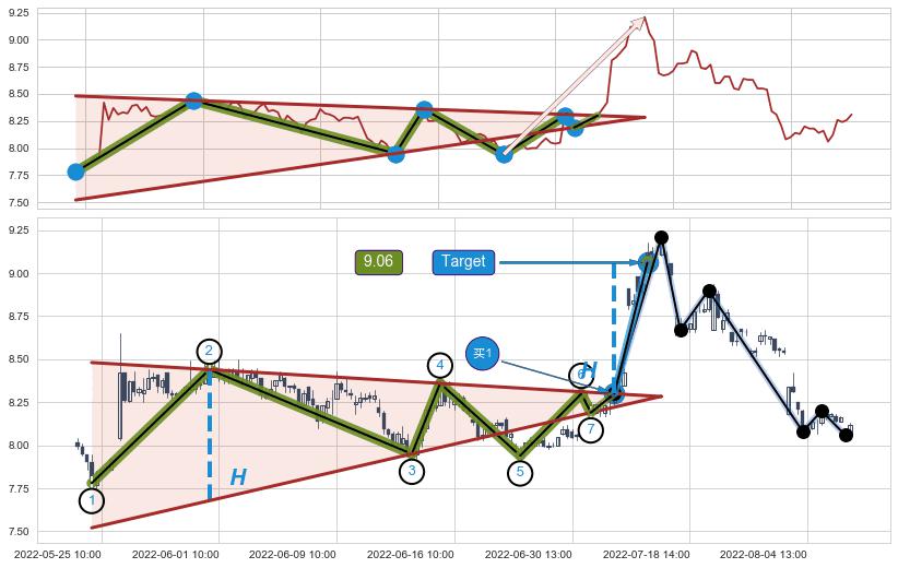 ➢ 【买1】: 激进型 买点 →(07-06:14: 8.30 )形成突破上升【对称】三角形整理【整理】形态