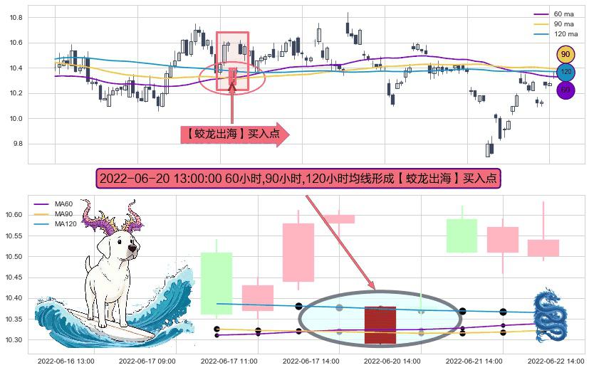⚀ 2022-06-20 13:00:00小时显现 60小时-90小时-120小时均线 【蛟龙出海】买入点 看多信号,后市看涨,买入