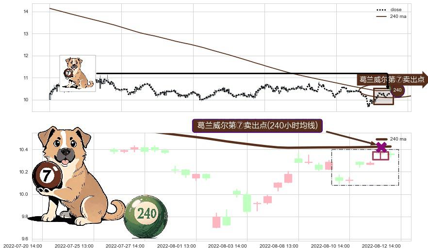 ⚀ 2022-08-12 13:00:00-小时显现 葛兰威尔均线 240小时均线 第⑦卖出点 下降趋势的中继信号,后市看跌,卖出信号