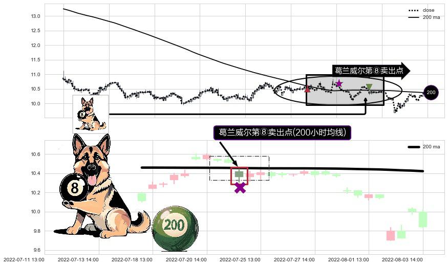 ⚀ 2022-07-22 13:00:00-小时显现 葛兰威尔均线 200小时均线 第⑧卖出点 下降趋势的中继信号,后市看跌,卖出信号