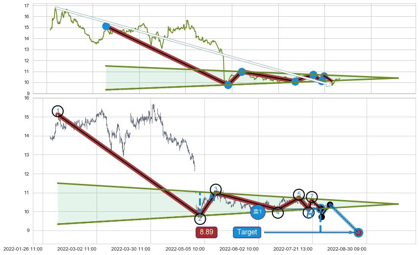 ➣ 【已确认突破】最后价格:10.35与最小【整理】第一目标价格→(08-25:12: 8.89 )相较: 下跌空间【较大】