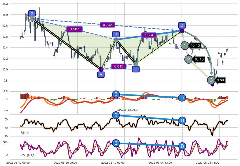 ➢ 谐波价格D点比B点高 ⤴,【KDJ】指标D点比B点低 ⤵️