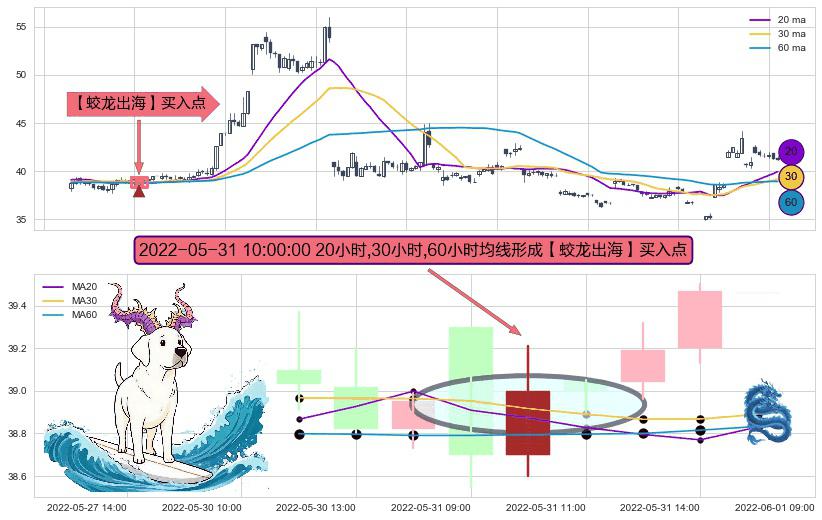 形态多维评估: ⚀ 2022-05-31 10:00:00小时显现 20小时-30小时-60小时均线 【蛟龙出海】买入点 看多信号,后市看涨,买入