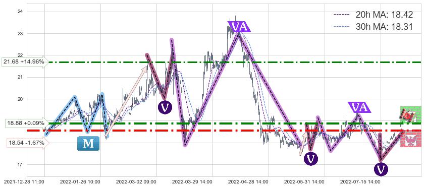 ♘ 阻力价格位21.68,可信任强度56.29%,距离最后交易2022-08-12 14:00形成的收盘价格18.86相差 +14.96%