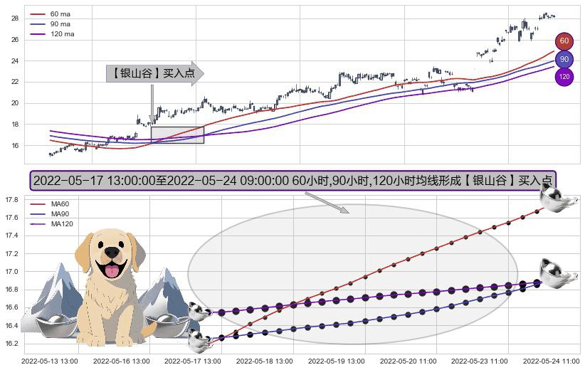 ⚀ 2022-05-17 14:00:00-小时至2022-05-24 09:00:00-小时显现 60小时-90小时-120小时均线 【银山谷】买入点 看多信号,后市看涨,买入