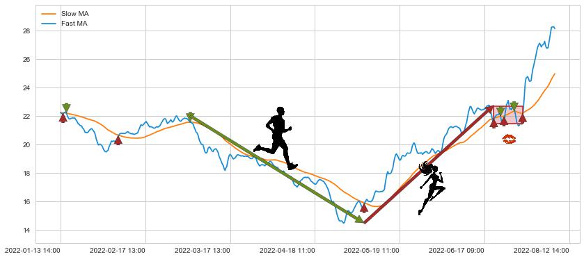 03-04 10:00至05-09 09:00 慢线与快线呈空头排列, 慢线与快线接触少,无缠绕