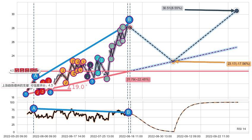 ♘ 支撑价格位22.63,可信任强度82.41%,距离最后交易2022-08-12 14:00形成的收盘价格28.11相差 -19.50%