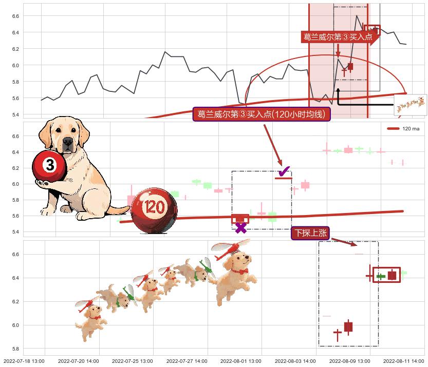 ➣ 收盘价(08-03:13: 5.64 )→回踩→第二根k线高点(08-02:13: 5.60 )
