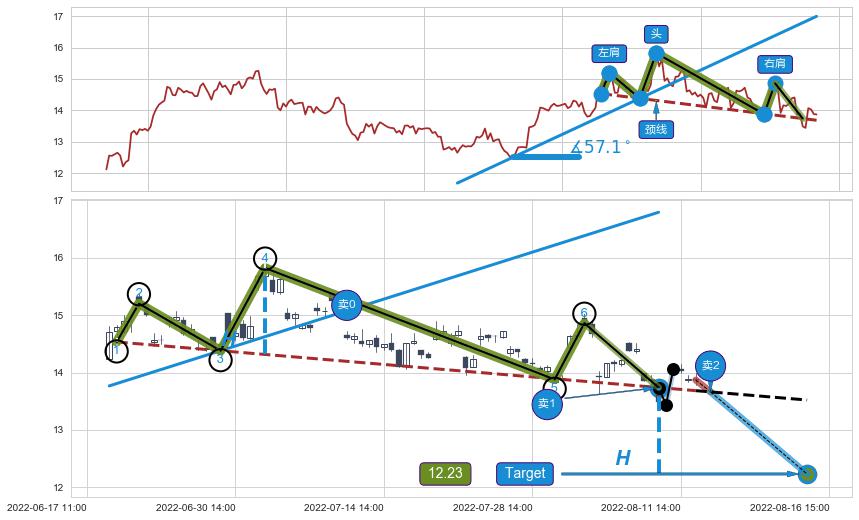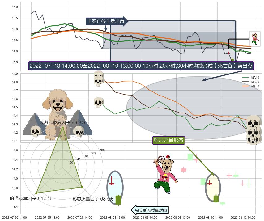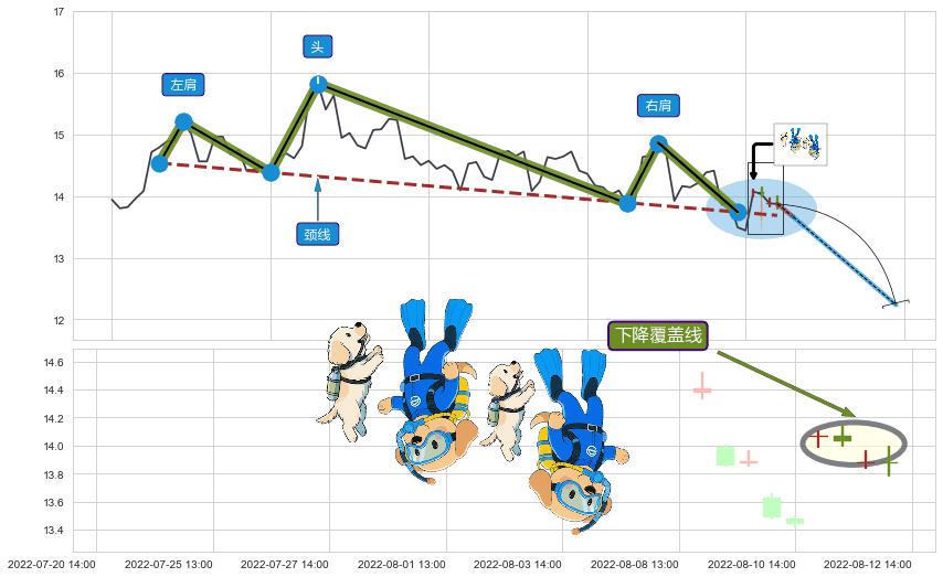 ➢ 【卖1】: 激进型 卖点→(08-10:13: 13.74 )形成突破头肩顶【反转】形态