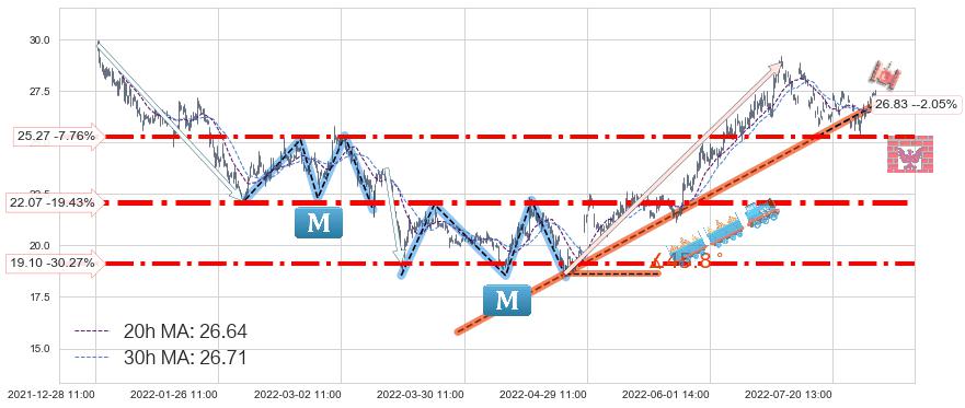 ♞ 20小时均线:26.64,30小时均线:26.71→ 快线<慢线