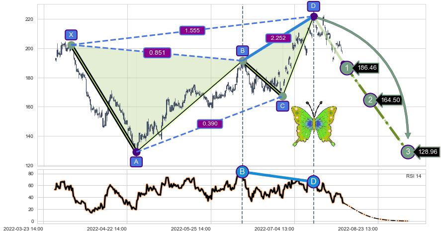 ➢ 谐波价格D点比B点高 ⤴,【RSI】指标D点比B点低 ⤵️