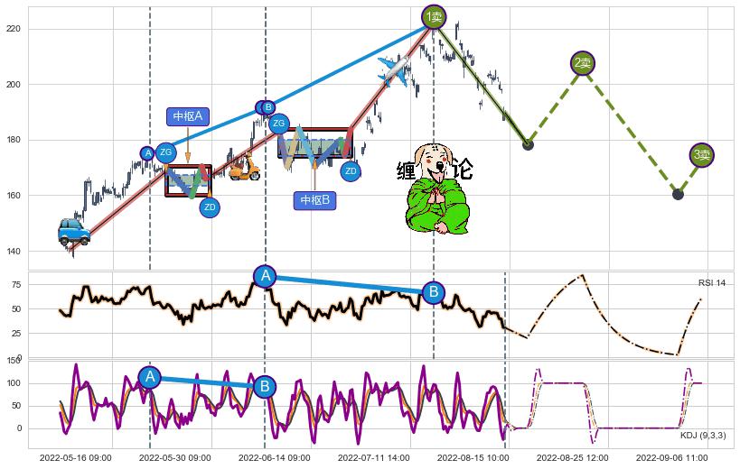 ➣ 【已完成】缠论 起点:05-09:14,完成第1中枢A,完成第2中枢B,终点:07-19:14,缠论共220交易小时
