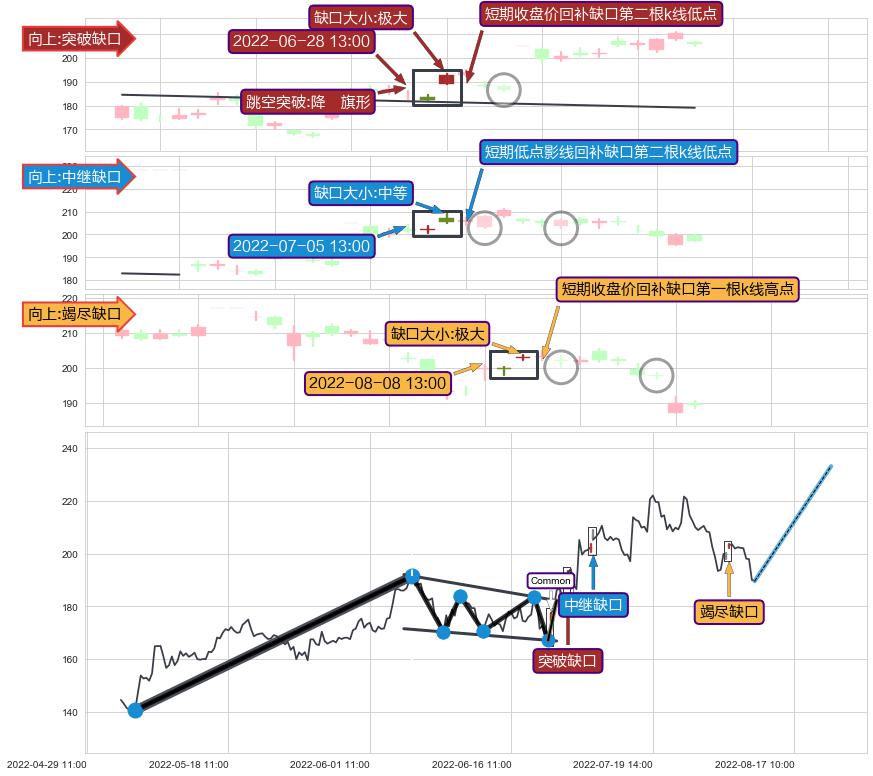 ➢ 2022-08-08 13:00形成:向上跳空【竭尽】缺口