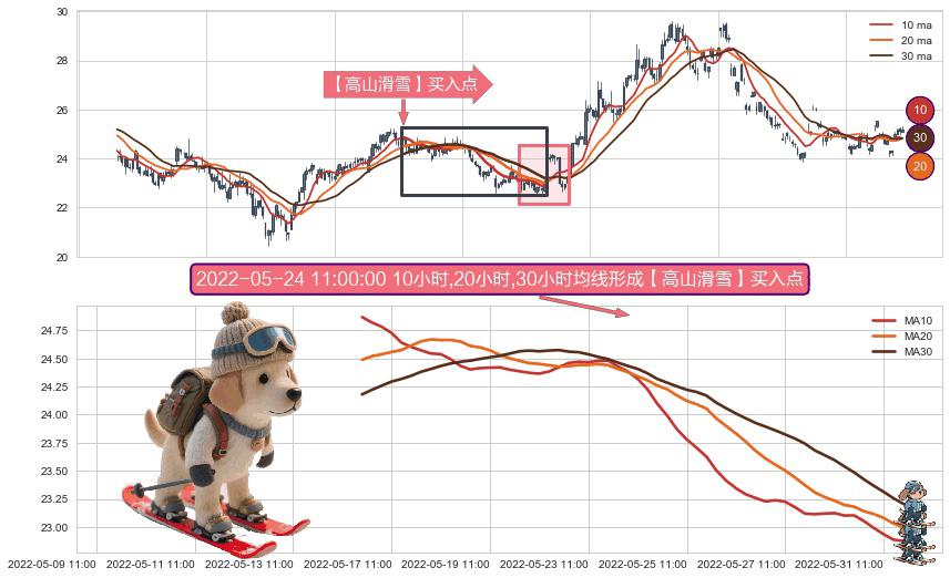 ⚀ 2022-05-16 14:00:00小时-2022-05-31 14:00:00小时显现 10小时-20小时-30小时均线 【高山滑雪】买入点 看多信号,后市看涨,买入