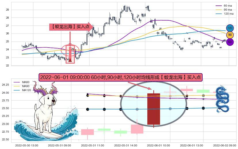 ⚀ 2022-06-01 09:00:00小时显现 60小时-90小时-120小时均线 【蛟龙出海】买入点 看多信号,后市看涨,买入