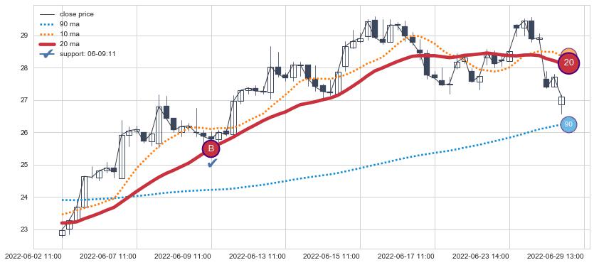 ⚂ 2022-06-01 09:00:00小时突然冒出一根大阳线,一下子顶穿三条均线且收盘价收在各条均线之上