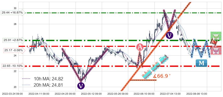 ♘ 支撑价格位25.17,可信任强度84.89%,距离最后交易2022-08-12 14:00形成的收盘价格25.19相差 -0.08%