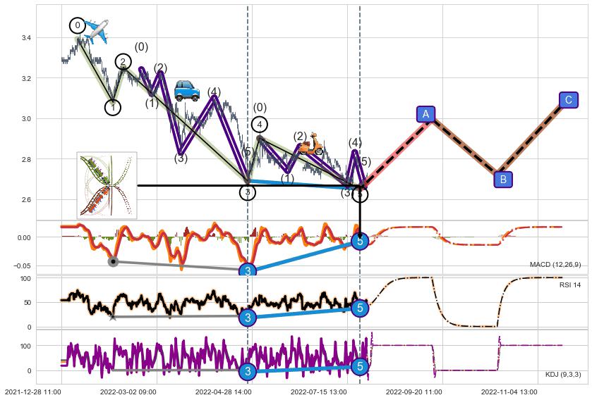 ➣ 1,3,5驱动浪MACD, RSI, KDJ走势都出现【常规背离】反转信号增强