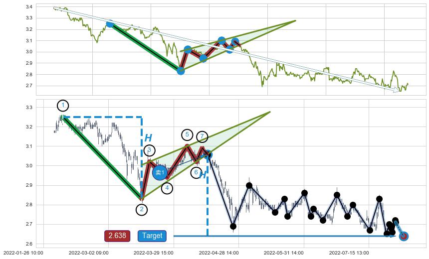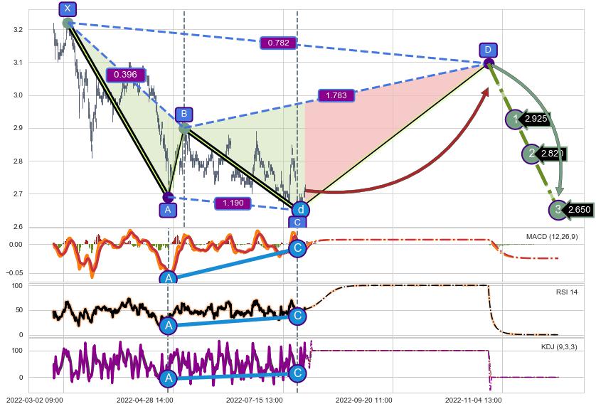 ➣ D点拟合预测价格3.096,距离最后交易收盘价格2.710相差 +14.23%