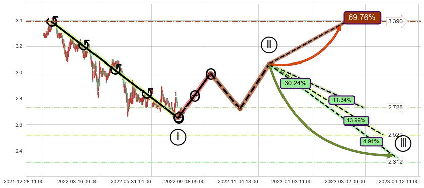 ➢ 循环浪继续向下【最低】位置(04-12:11, 2.312),匹配聚类样本比例16.25%, 可能性概率4.91%