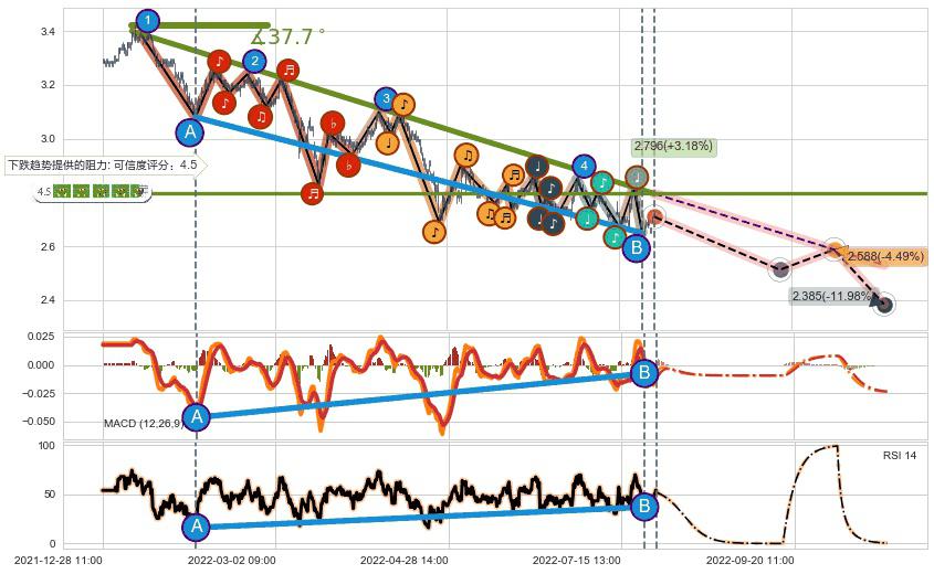 ➢ 预测:2022-10-14 11:00,【继续下探】稳定目前下跌趋势的前提下,预测价格:2.385