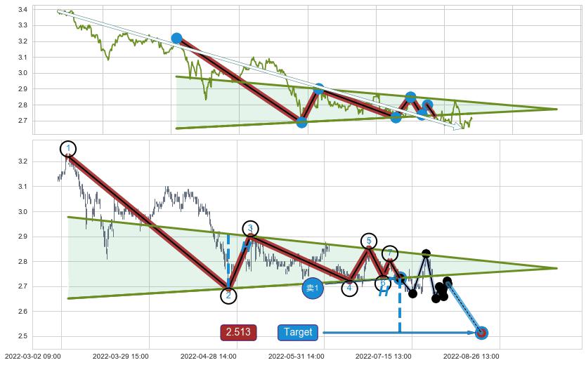 ➣ 【已确认突破】最后价格:2.710与最小【整理】第一目标价格→(08-23:10: 2.513 )相较: 下跌空间【较大】