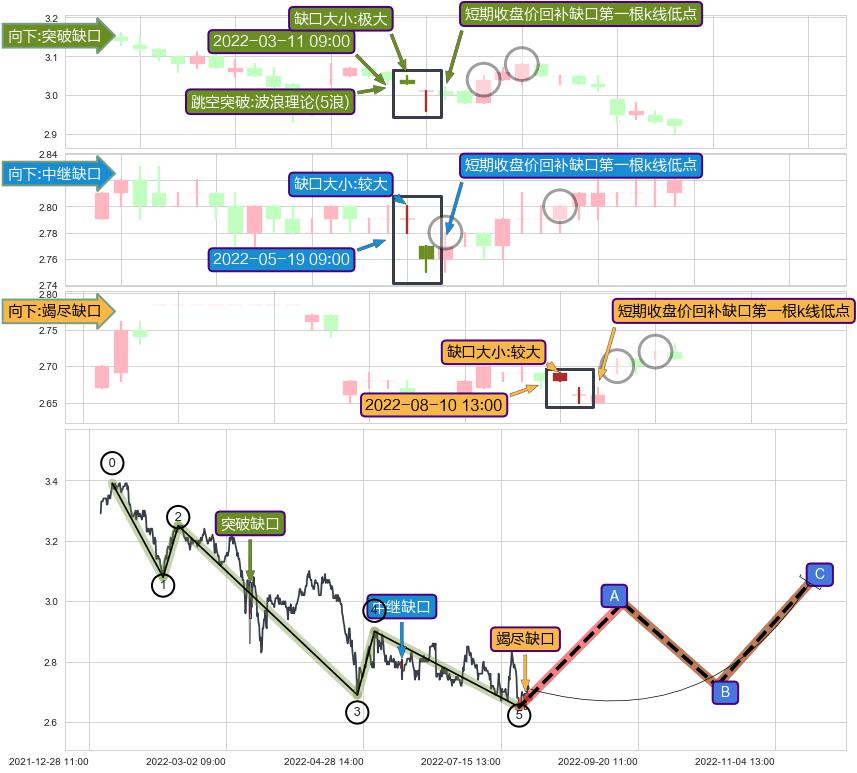 ➢ 2022-08-10 13:00形成:向下跳空【竭尽】缺口