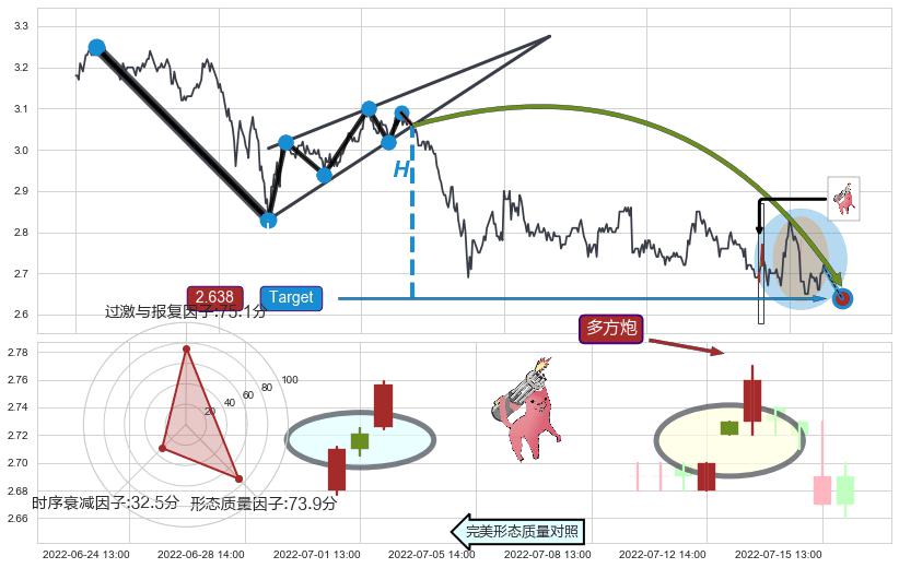 ➢ 【卖1】: 激进型 卖点→(07-06:13: 2.732 )形成突破下降【对称】三角形整理【整理】形态