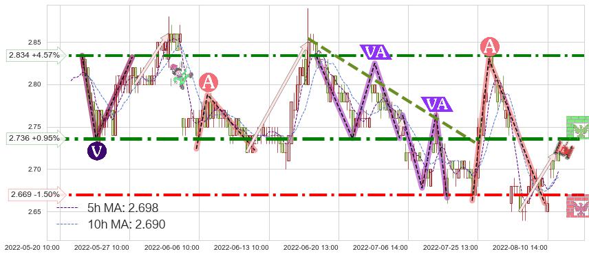 ♘ 阻力价格位2.736,可信任强度88.63%,距离最后交易2022-08-12 14:00形成的收盘价格2.710相差 +0.95%