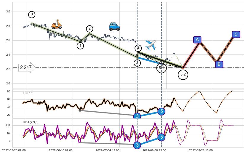 ➣ 5.1: 预测当前第5浪位置(08-03:14, 2.270),仍然有下跌空间