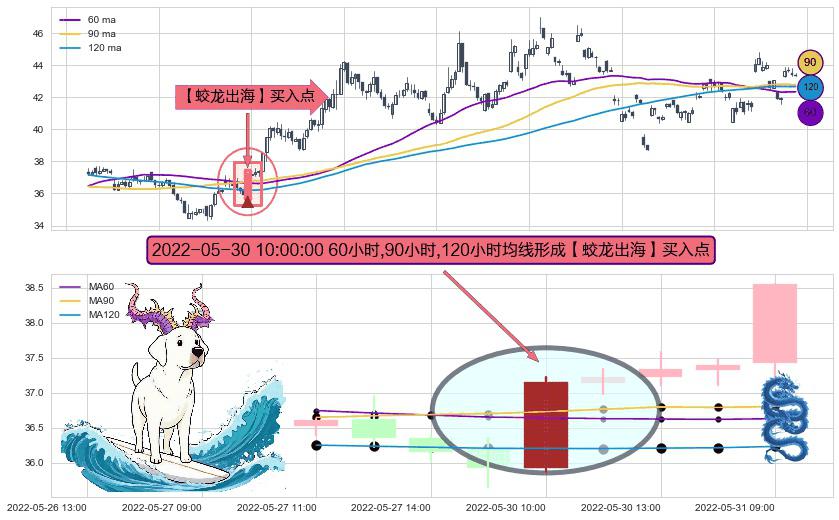 形态多维评估: ⚀ 2022-05-30 10:00:00小时显现 60小时-90小时-120小时均线 【蛟龙出海】买入点 看多信号,后市看涨,买入