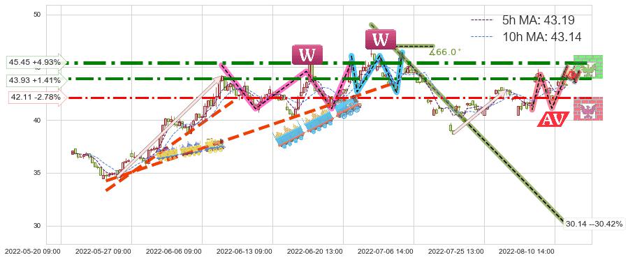 ♘ 阻力价格位43.93,可信任强度77.77%,距离最后交易2022-08-12 14:00形成的收盘价格43.32相差 +1.41%