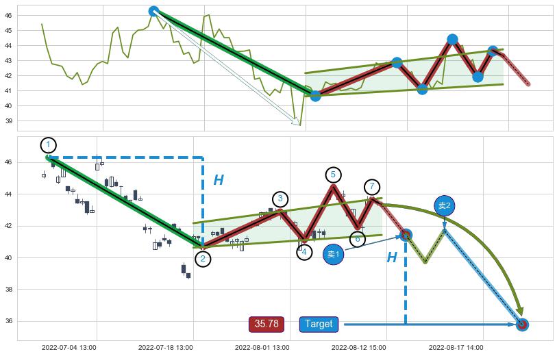 ➣ 最小中继整理跌幅→𝐇: 5.64 (𝐇旗杆的长度:旗杆起点→顶点)