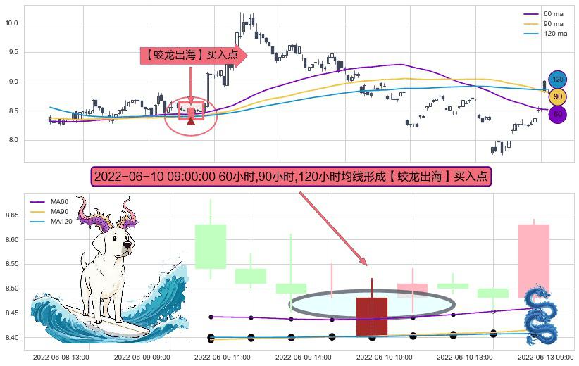 ⚀ 2022-06-10 09:00:00小时显现 60小时-90小时-120小时均线 【蛟龙出海】买入点 看多信号,后市看涨,买入