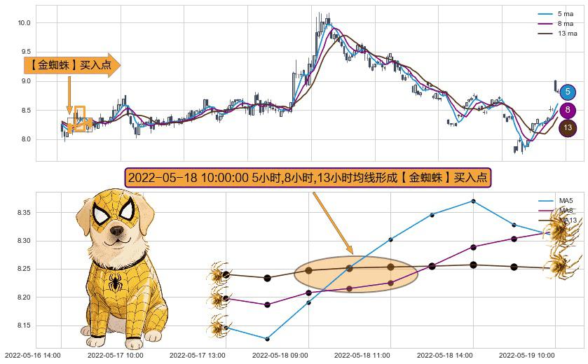 ⚀ 2022-05-18 10:00:00小时显现 5小时-8小时-13小时均线 【金蜘蛛】买入点 看多信号,后市看涨,买入