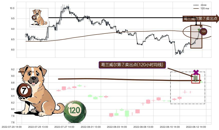 ⚀ 2022-08-12 13:00:00-小时显现 葛兰威尔均线 120小时均线 第⑦卖出点 下降趋势的中继信号,后市看跌,卖出信号