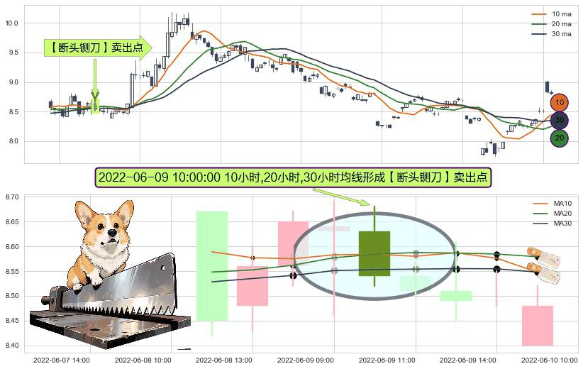 ⚀ 2022-06-09 10:00:00小时显现 10小时-20小时-30小时均线 【断头铡刀】卖出点 看空信号,后市看跌,卖出