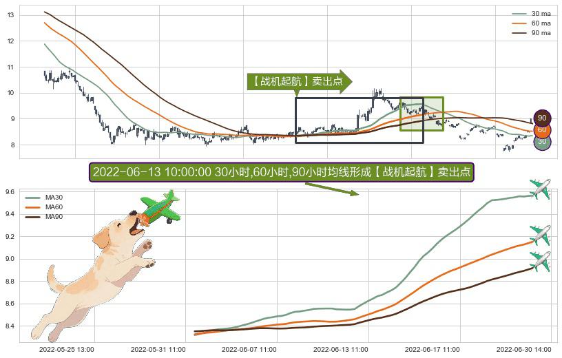 ⚀ 2022-05-31 14:00:00小时-2022-06-28 14:00:00小时显现 30小时-60小时-90小时均线 【战机起航】卖出点 看空信号,后市看跌,卖出