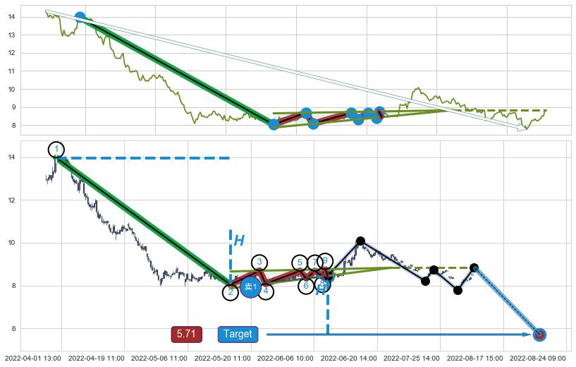 ➣ 【已确认突破】最后价格:8.80与最小【整理】第一目标价格→(08-24:09: 5.71 )相较: 下跌空间【较大】