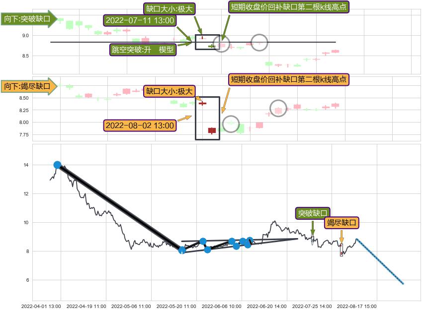 ➢ 2022-08-02 13:00形成:向下跳空【竭尽】缺口